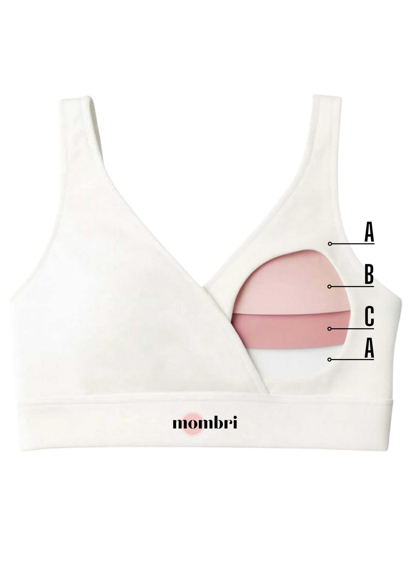 Biustonosze Mombri zostały wyposażone w dyskretną, wszytą wkładkę nieprzemakalną.
