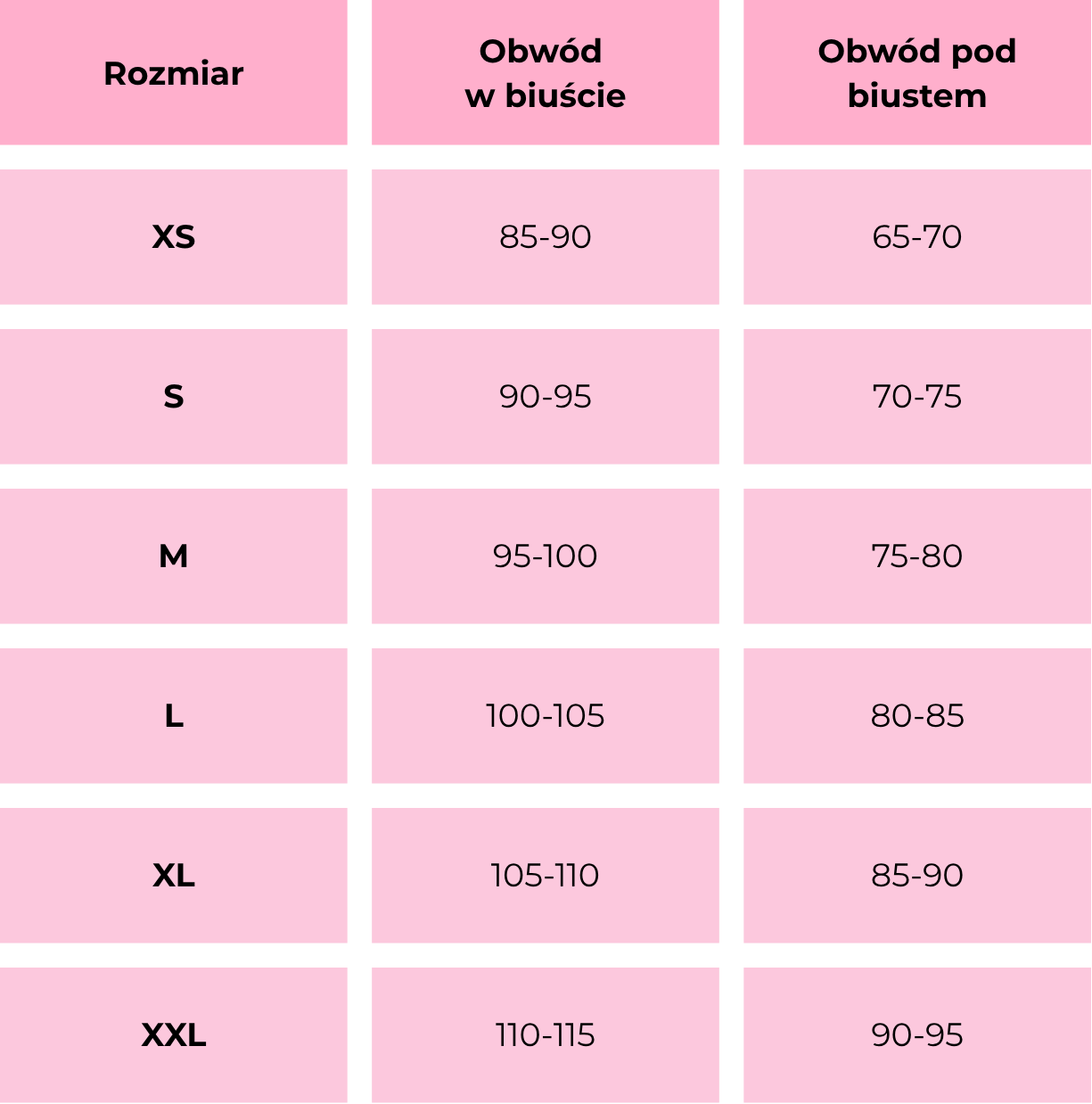 Pamiętaj, w przypadku wyboru rozmiaru obwód pod biustem jest bardziej istotny.